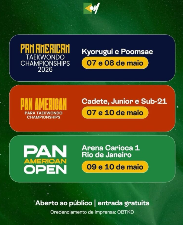 In approximately 15 days, the iconic city of Rio de Janeiro will once again ignite the continental taekwondo scene. From May 7 to 10, 2026 , Arena Carioca 1 , in the Olympic Park, will be the epicenter of Pan American taekwondo, hosting the Pan American Senior G4 Championship, Parataekwondo, Poomsae, and the Pan American Open for cadets, juniors, and under-21s, all part of a single week of high-impact competition.
